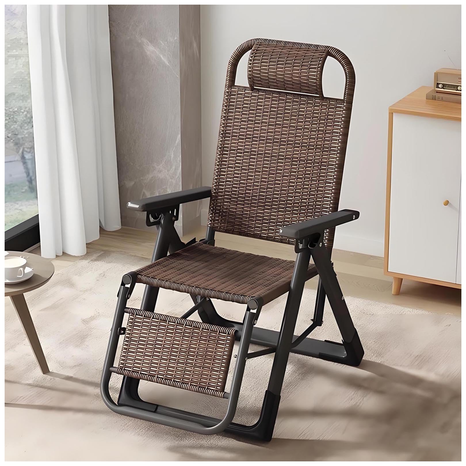 FLEPYHB Sillón Reclinable Plegable de Ratán para Exterior, con Reposacabezas, Ideal para Jardín, Patio, Piscina o Playa