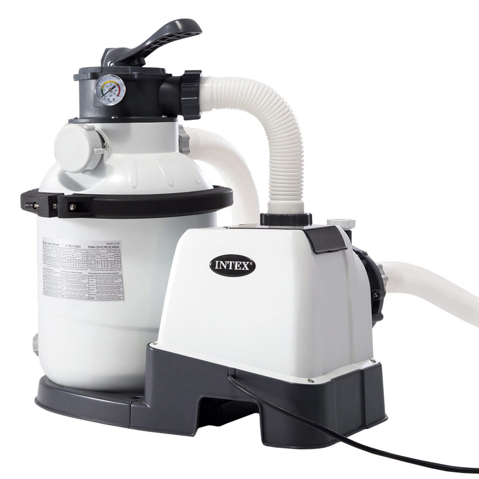 - Incluye depuradora de arena con capacidad de filtración de 5.700 l/h y conexión de 38 mm (arena no incluida), escalera de seguridad, tapiz y cobertor